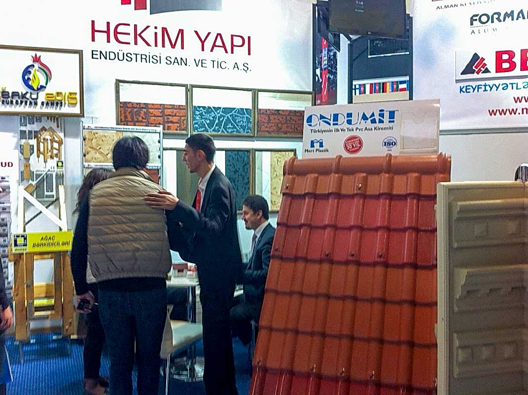 Ondumit Azerbaycan distribütörü Behrud Company’nin BakuBuild 2014’te açtığı stantta ziyaretçilerle birlikte buluştuk. Bu yıl 20.’si düzenlenen uluslararası fuarda, Ondumit satış temsilcilerinden Efecan Hekim de fuara katılarak Ondumit ürünlerinin tanıtımında Behrud Company yetkililerine destek oldu.
